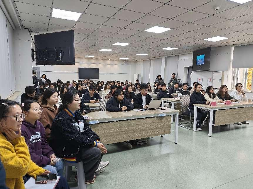 捷赛厅举行。刘晓翠作为主讲人,为学生们带来了精彩的宣讲。她给着重讲述了中储粮江苏分公司的基本情况,放映了精心制作的企业宣传片,向同学们展示了公司的所得荣誉、直属企业分布以及直属库实拍图等。随后,她向同学们介绍了大家关注的中储粮江苏分公司的招聘岗位、职责和薪资待遇,让同学们深入了解企业发展前景以及对于人才的需求和期望。在互动环节中,学生们积极提问,刘晓翠及随行职员耐心解答了学生的疑问,宣讲会现场气氛热烈。