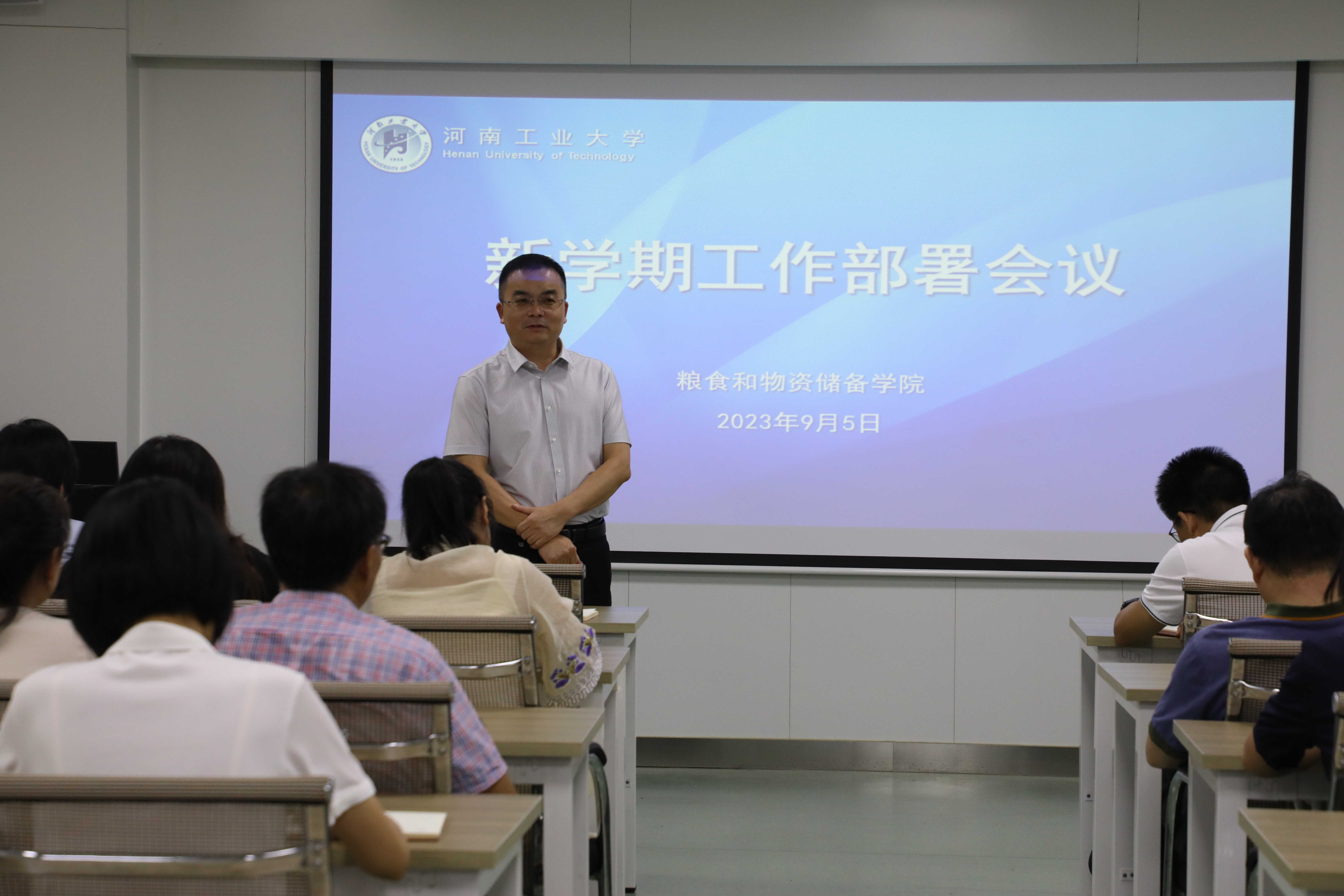 于40202召开新学期工作部署会议,明确学院新学期工作重点,进一步提升工作效果,学院领导班子及全体教职工参加。会议由党委书记代辉亚主持。