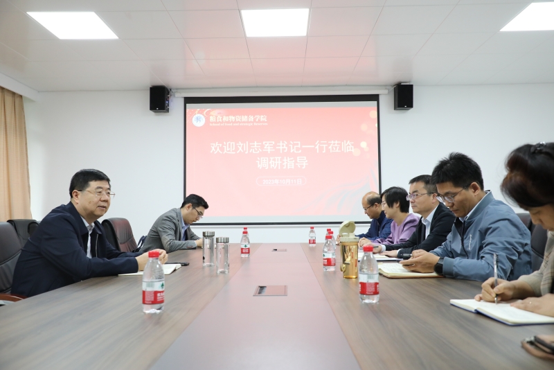 刘志军在认真听取汇报后,对学院成立以来取得的各项成绩给予了充分的肯定。他指出,学院领导班子要抓住机遇,攻坚克难,保持学院良好的发展态势,进一步开拓学院发展空间,同时对学院建设和发展提出具体的指导性意见:一是坚持党建引领,推动学院高质量发展。坚持围绕中心抓党建,发挥党建引领作用,促进党建与业务融合发展,激发教职工干事创业活力,构建坚强战斗堡垒,用高质量党建推动高质量发展。二是要锚定目标,发挥粮食储藏方向的专业优势,主动与粮食系统主管部门、行业龙头企业等对接,保持顺畅的校政企沟通渠道,及时掌握最新政策、资讯、技术和人才需求,打造学校粮食行业“信息中心”和“技术中心”,推进政产学研深度融合。三是坚持传承与创新并存的学科建设思路,整体谋划,统筹推进,保持粮油储藏的学科优势,加快物资储备学科和服务行业能力建设,推进新老学科交叉融合创新,进而推动“储备学”学科建设。四是紧紧围绕立德树人根本任务,加大内涵建设,聚焦人才培养,持续提升服务粮食和物资储备行业的能力和水平。