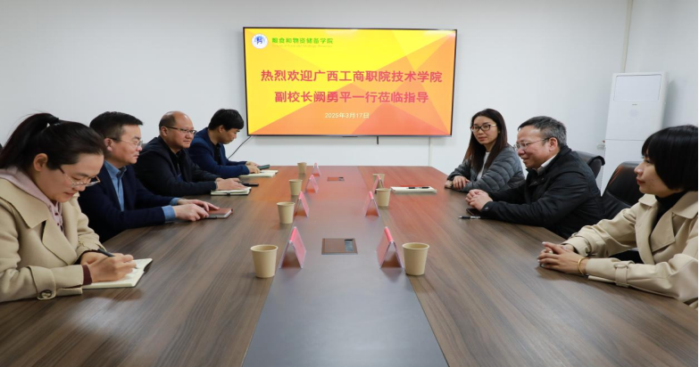 的成立旨在发挥我校在粮油储藏方面的优势,将储藏专业做大做强,并逐渐向物资储备领域发展,推动我校双一流学科建设的发展,服务国家粮食安全战略、保障国家粮食和物资储备安全。同时,他也希望与广西工商职院技术学院在师资培训、科研平台共建、人才培养等方面进行合作。阎磊副院长就学院科研平台、学生培养和社会服务等方面的情况做了简单介绍。