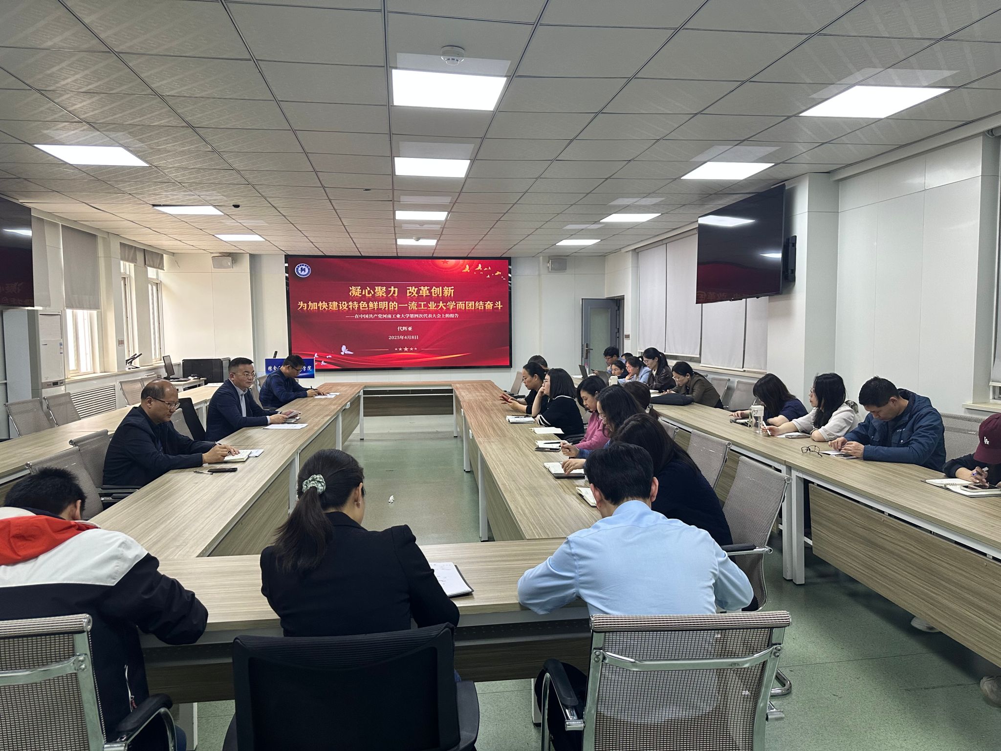 于40202会议室隆重召开学习贯彻党代会精神专题会议。此次会议由学院党委书记代辉亚主持,学院领导班子成员及全体教职工共同参会,共谋学院发展新篇章。