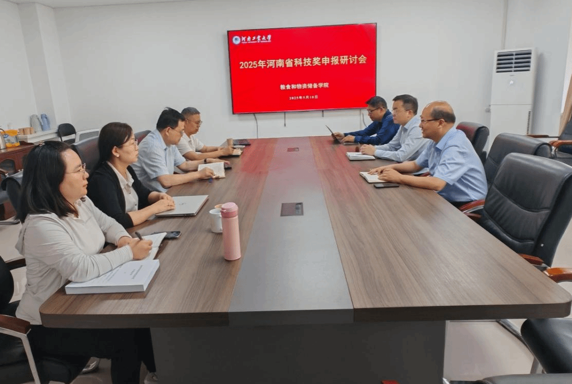 与212会议室召开了2025年河南省科技奖申报研讨会。学院书记代辉亚、副院长阎磊、学术副院长陈亮、粮油食品学部副主任王殿轩及申报团队骨干人员参会,会议由学院副院长阎磊主持。