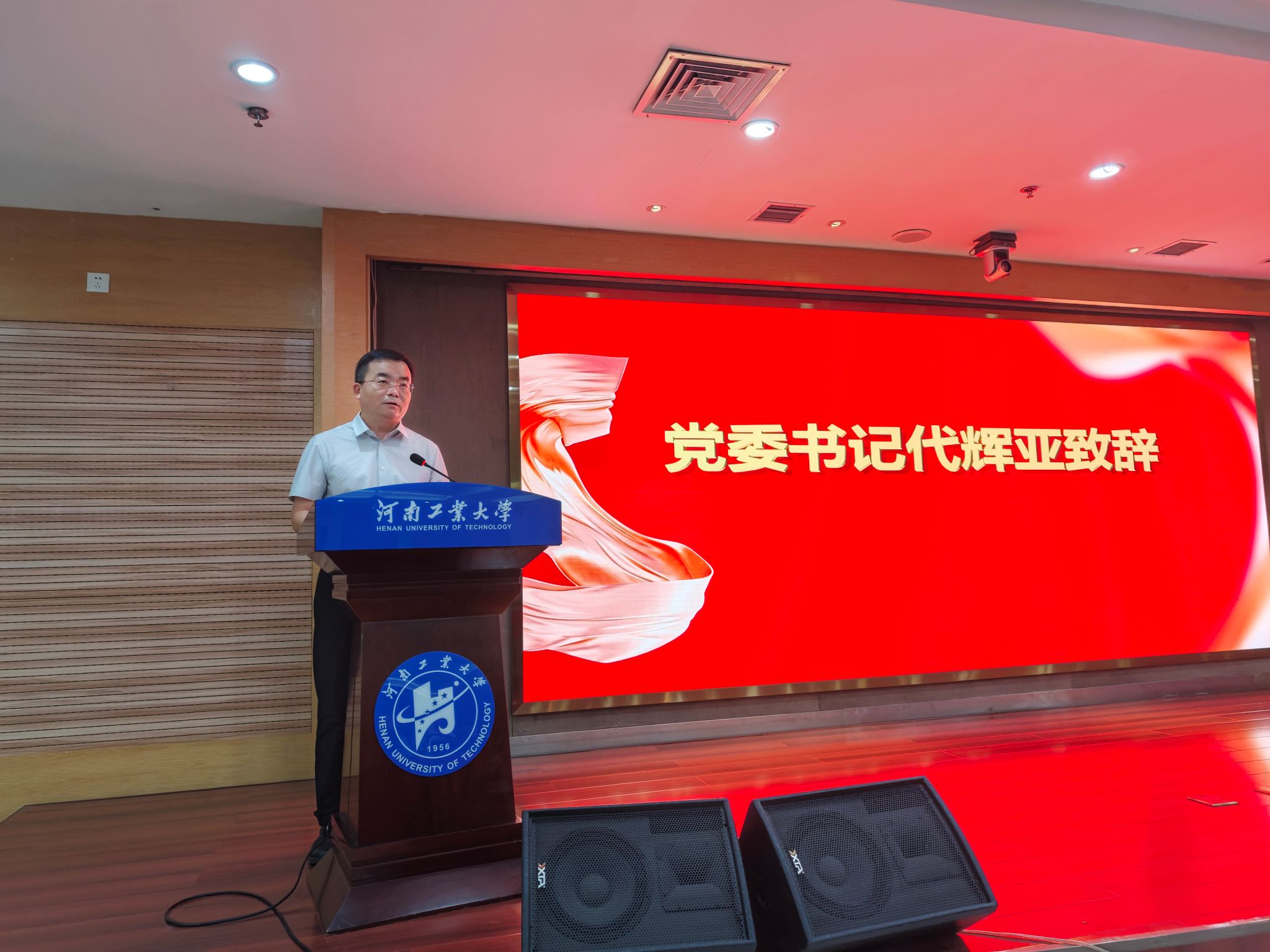 2025级新生开学典礼在行政楼D102报告厅举行。本次典礼特邀郑州华粮科技股份有限公司副总经理胡东出席,学院党委书记代辉亚、院长吴文福、党委副书记梁艳、学院各科室负责人、各科研团队教师代表、全体辅导员和2025级全体新生共同参加。典礼由梁艳主持。