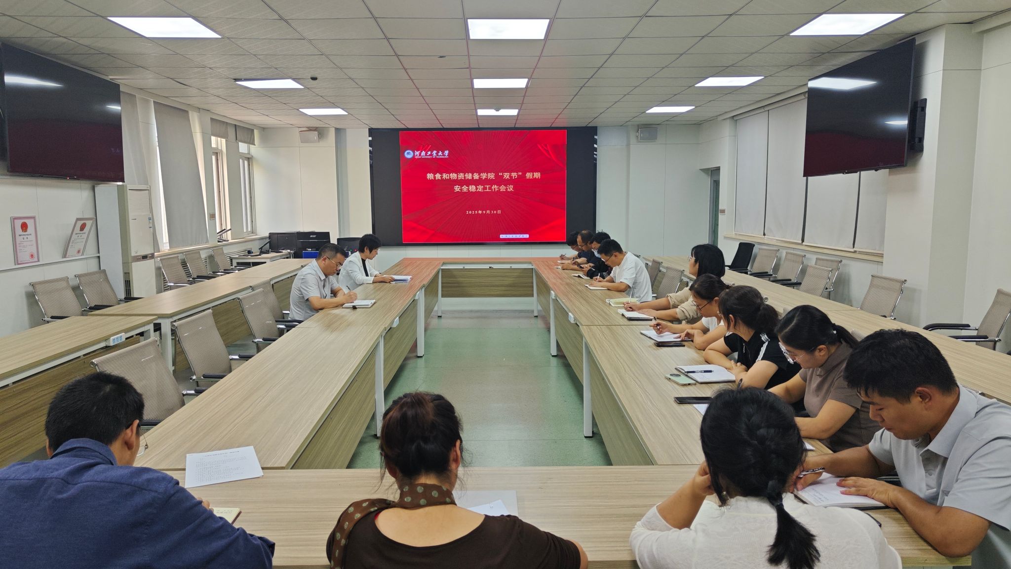 为深入贯彻落实学校安全稳定工作会议精神,切实筑牢‘双节’期间安全防线,9月30日下午,学院在学院202会议室召开安全稳定工作会议,对近期安全稳定工作作出全面部署。院领导班子成员、全体行政人员及各科研团队负责人参加会议,会议由院党委书记代辉亚主持。