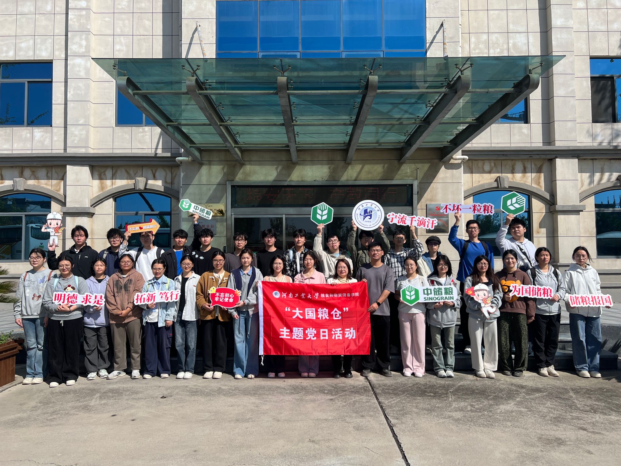 以党建引领产教融合,再谱育人新篇章。9月23日,学院粮油储藏系教师带领食品科学与工程专业智慧储运方向本科生,前往中央储备粮郑州直属库有限公司开展毕业实习活动。此次实践以“守好大国粮仓,培育时代新人”为核心,通过支部共建、现场观摩、科技研讨等形式,深化校企协同育人,助力学生提升仓储业务能力,以实际行动服务国家粮食安全战略。