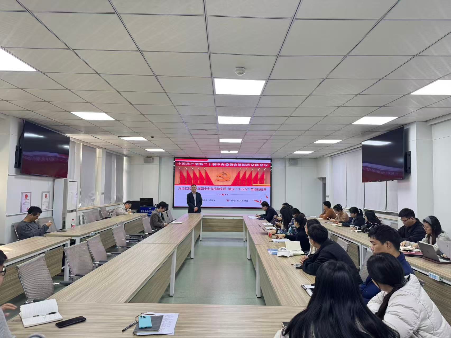 在崇实楼202学术报告厅隆重举办学习贯彻党的二十届四中全会精神专题宣讲会。院党委书记代辉亚紧扣全会精神核心要义作宣讲报告,党委副书记梁艳和学院全体教师参加报告会。