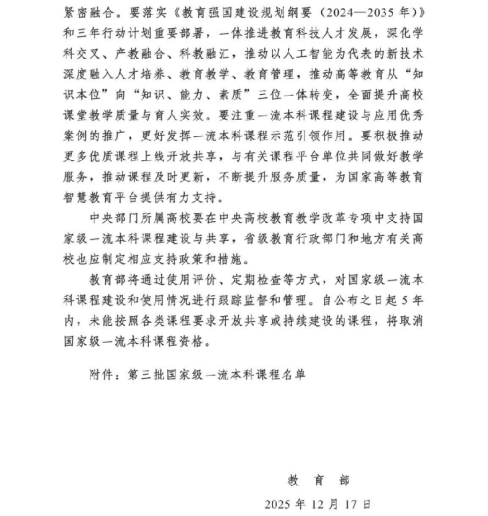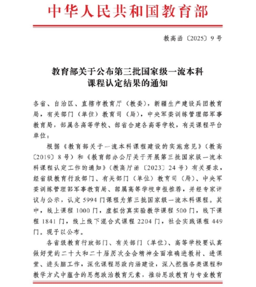 近日,教育部正式公布第三批国家级一流本科课程认定结果。yanetfix