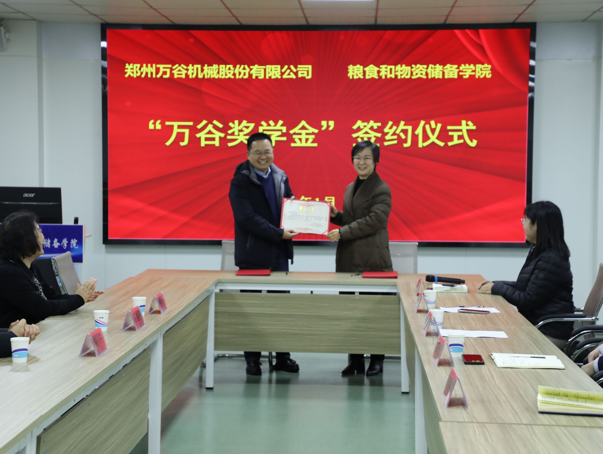 代辉亚在致辞中指出,学院始终以服务国家粮食安全战略为导向,深耕产学研用融合,构建“行业需求导向、实践能力为本”的人才培养体系。郑州万谷机械股份有限公司设立30万元“万谷奖学金”,既是对学院办学质量的高度认可,更是对青年学子的深情嘱托。他表示,学院将以此次合作为契机,在人才培养、师资共建、实践基地建设等方面与企业深化合作,让人才培养精准对接行业发展需求。