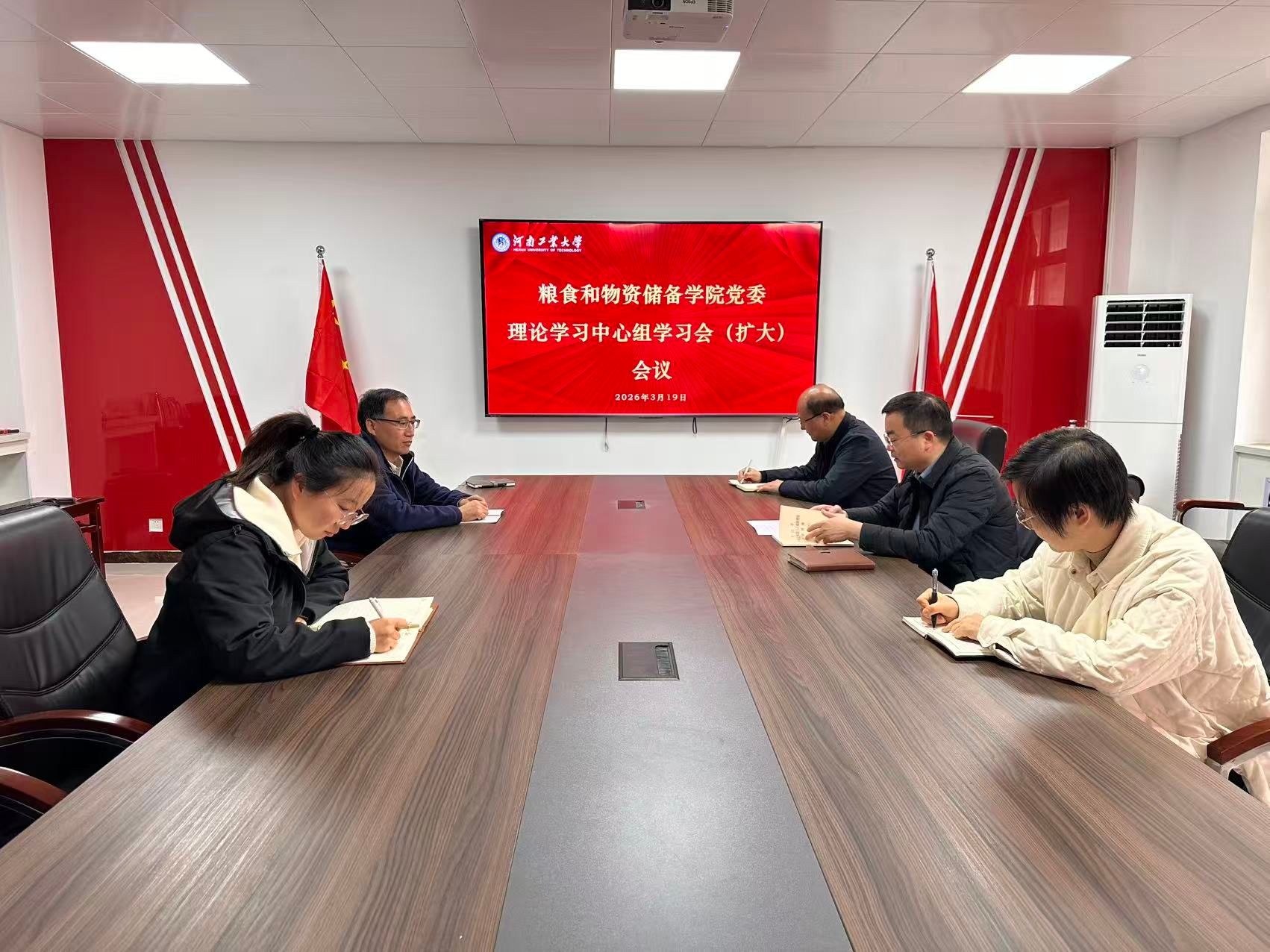 在40212会议室召开党委理论学习中心组学习(扩大)会议。学院领导班子成员、各党支部书记参加会议,学院党委书记代辉亚主持会议并领学。